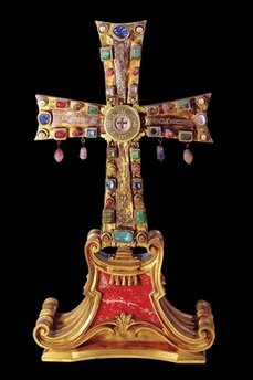 据报道,梵蒂冈有关方面表示,将于周四展出经过修复的带圣物匣的十字架(La Crux Vaticana),来自公元6世纪的珍贵文物。据传这个镶嵌宝石的黄金十字架中藏有钉死耶稣的十字架的一部分碎片。