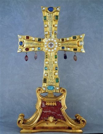 公元6世纪中叶,拜占庭帝国皇帝查斯丁二世将这个带有圣物匣的十字架赠送给了罗马,为当地市民带去了福音。自从该匣被捐赠给圣彼得大教堂之后,梵蒂冈一直将其视若珍宝,在举国最为隆重的圣诞节、复活节仪式上使用。