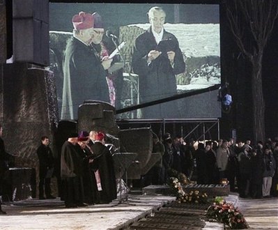 中新网1月28日电 据英国广播公司报道,1月27日是波兰奥斯威辛集中营解放65周年的纪念日,超过100名种族大屠杀幸存者和多国领导人出席了在集中营遗址举行的纪念仪式。