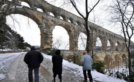 据报道,在法国南部科比耶尔,大雪使得高速公路能见度降低,经过的汽车都要减速行驶。尼姆也被白雪覆盖,工人忙于清理积雪。通常阳光普照的沙滩,变成白茫茫的一片。