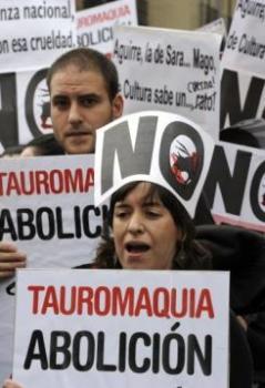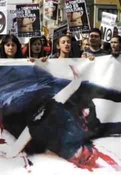 西班牙约50个动物权利保护组织和反斗牛团体号召人们走上街头,反对这种惨无人道的人类活动。