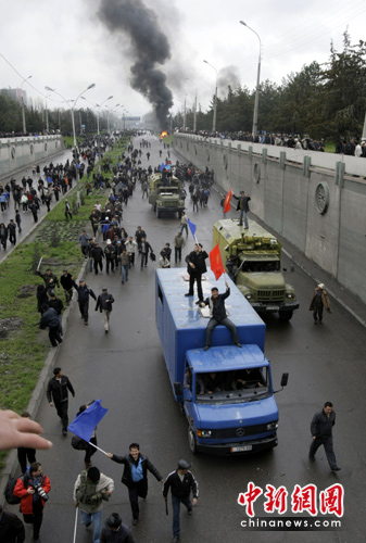 中新网4月8日电 综合媒体报道,吉尔吉斯局势紧急,反对派在全国发动的示威7日演变为骚乱,蔓延至首都。示威者要求总统巴基耶夫下台,他们冲击政府大楼,袭击政府官员,占领电视电台,宣布自组政府,并将第一副总理扎帕罗夫抓为人质,传内政部长孔甘季耶夫被殴致死。警方向示威者开枪,反对派称约100人死亡,卫生部称40人死亡,400人伤。伤者多为年轻人。