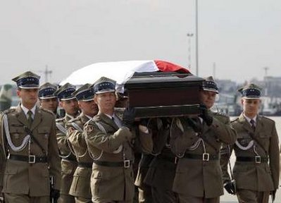 11日,卡钦斯基的遗体在俄罗斯总理普京的目送下,在斯摩棱斯克市机场被送上返回华沙的飞机。此前,普京和波兰总理唐纳德•图斯克在波兰总统专机失事现场敬献鲜花,向遇难者表示哀悼。普京称斯摩棱斯克空难不仅是波兰的悲剧,也是俄罗斯的悲剧。