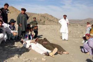 据泰国《曼谷邮报》24日报道,当日,5名男子被发现横尸米兰沙阿以南30公里的Kamsarobi村的一条小路旁。死者满身都是弹孔,死状凄惨令人震惊。米兰沙阿是巴基斯坦西北部北瓦济里斯坦部落区的一个城镇,当地警官梅赫·沙赫透露:“23日晚,塔利班武装分子指责5名死者协助美军无人袭击塔利班武装,遂将他们残忍杀害。在尸体上我们找到一张字条,上面写着‘这些人正在监视塔利班的动向。任何一个做这样事情的人都会是这个下场。’”