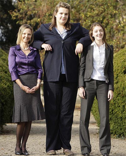 中新网11月5日电 据英国媒体报道,英国最高女学生艾玛•卡希尔为她的身高感到无比的自豪与骄傲。现年16岁的她,已达到195.5厘米,不过她甚至希望还能再长高点。