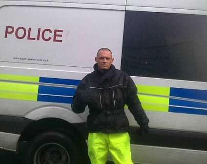 照片上,梅纳德穿着扎眼的荧光裤和类似警察穿的黑色外套,站在一辆警车前大摆姿势。而报社果然将这张通缉犯自认为的“帅照”刊登了出来,并放在报纸的头版。