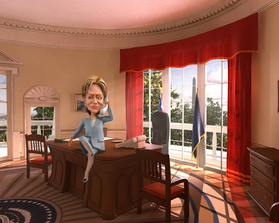 这段卡通片名为《动画人性》(Cartoon Personalities),是于15日在俄罗斯国家电视台第一频道播出的。这段动画生动地展现了多位政治人物和明星的形象。片中,美国国务卿希拉里·克林顿一身天蓝色套装打扮,和平日里的着装非常相似。不过希拉里却是坐在白宫椭圆形办公室的桌子上,一边翘着二郎腿一边打电话,面部表情还很严肃。