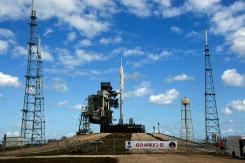 “战神一号”的高度超过了美国自由女神像,工程师用了整整一夜时间才将其从飞机棚拖到发射台。从飞机棚到发射台虽只有六点四公里,但工程师们却用了七个多小时。该火箭将于下周二升空,以测试第一节火箭的性能。该火箭耗资四亿四千五百万美元。