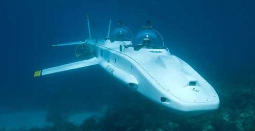 中新网11月9日电 据香港《大公报》援引英《每日邮报》网络版八日消息:个人潜艇的设计日新月异,美国设计的一款小型飞机模样的潜艇备受瞩目,因为它可以潜入水底一千英尺以上,时速高达六海里,可以让玩家三百六十度探索海底世界。这架超级潜艇飞机每架盛惠一百五十万英镑,俄罗斯亿万富豪阿布及布兰森都有意购置一部。