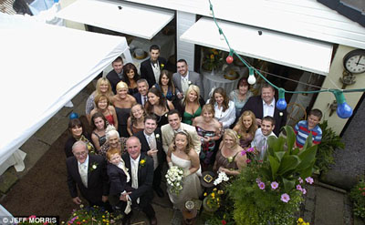 晚上的庆祝活动开始之前,所有亲朋都作为服务生招待前来的家人和朋友,客人共约100位。喜宴在本的父母家举行,在一个经过翻修装饰的车库和一顶价值80英镑的大帐篷里喜气四溢地进行。