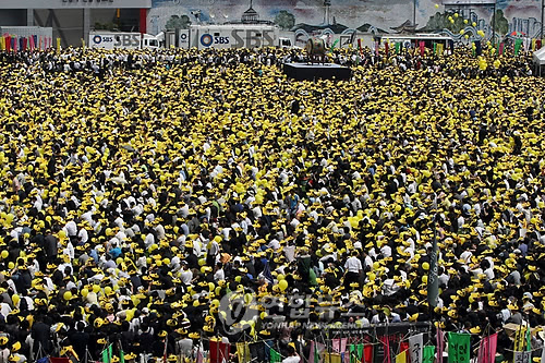 当地时间7时40分,首尔警方解开对首尔广场的封锁,市民便开始大量涌入。警方推算,截至当地时间上午10时10分,人行道和广场已聚集了1.2万多人。
