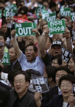 中新网6月11日电 据法新社报道,韩国一万多名群众10日举行反政府游行,要求李明博下台。