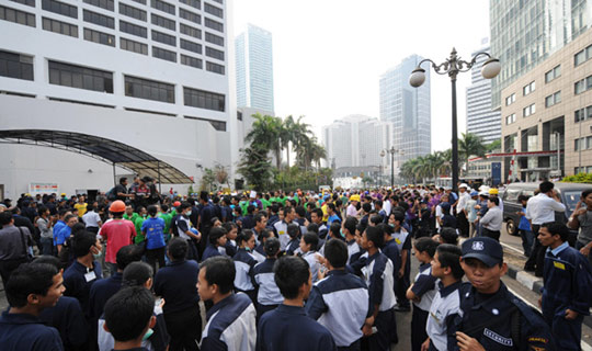 在首都雅加达,群众纷纷涌上街头躲避,上班族也从办公大楼中相继撤离。