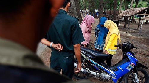 在亚齐省的海滨公园中,一对年轻夫妇坐得很近,丈夫的手臂搂着妻子的肩膀,而妻子没有穿她的吉尔巴布(穆斯林传统服装,只露出脸和双手)。这时,一伙儿“道德警察”来到他们面前。六名巡逻队员中的一人就会问:“你们还没结婚,对吗?你们不应该坐得太近。”他们会将两人强行分开,并没收他们的身份证,然后对他们的关系进行调查。
