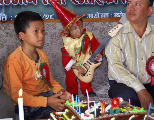 两年前,卡根德拉开始到加德满都以西二百公里处的卡斯基区的萨拉斯瓦蒂寄宿学校求学,目前已经达到尼泊尔初等教育水平。但鲁普表示:“卡根德拉在学校需要特别的照顾,他也不能参加学校正常的体育活动,他比羽毛球拍子还要矮,学校有些孩子经常嘲笑他。”
