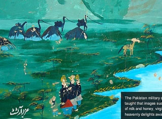 巴国军方表示,塔利班告诉中心里的孩子,画中河流由牛奶及蜂蜜组成,岸边女子则是在天堂中等待他们的处女。孩子们还被告知,他们将与先知穆罕默德一起居住,参加盛宴。其中一幅画里有与当地泥房相似的房屋,但周围环境现实中的荒凉景象形成强烈对比,画上还写“塔利班万岁”。反恐专家指出,这些内容虽然简单,但对未见过外面世界的孩子,特别有吸引力。