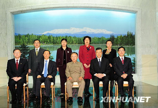 金正日首先与代表团合影留念。他请王家瑞转达对胡锦涛总书记等中国党和国家领导人的亲切问候,并热情地向中国人民拜年。他说,去年是朝中建交60周年,双方围绕“朝中友好年”所举办的一系列交流活动,向世人、特别是两国年青一代展示了朝中友谊的旺盛活力。当前双边关系很好,今后会发展得越来越好。