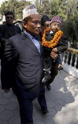 中新网2月22日电 据外电21日报道,尼泊尔一名身高仅为22英寸(约合56厘米)的男子上周日从家乡出发,在众人的簇拥下前往欧洲寻求被认可为世界上最矮的人。