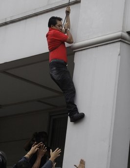 红衫军领导人阿里斯曼(Arisman Pongruanrong)通过绳梯从位于曼谷市中心的这家酒店爬下,在等候的红衫军民众的帮助下,进入一辆车中然后迅速离开。另外一名红衫军领导人从酒店窗户爬出并顺着一棵树滑下,也成功逃离现场。
