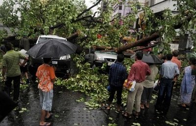 热带风暴袭击了孟加拉邦人口密集的首府加尔各答,造成树木折断、断电,许多车辆被毁。
