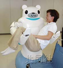 该外形为北极熊的机器人高约为140公分,重约180公斤。在现场示范时,当负责操作的护工一发出“抱起”的指令,机器人就立即将趟在床上的女性抱起来并轻轻放到轮椅上。该名女性称感觉“与被人抱着一样安心”。