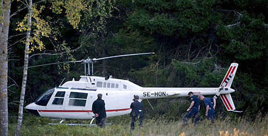 不久后,警方在斯德哥尔摩北方25公里处的湖泊附近发现一架直升机,据信是作案工具。警方发言人表示盗匪在案发现场和直升机上都留下许多证据。除了爆炸物,警方认为盗匪还持有自动步枪。