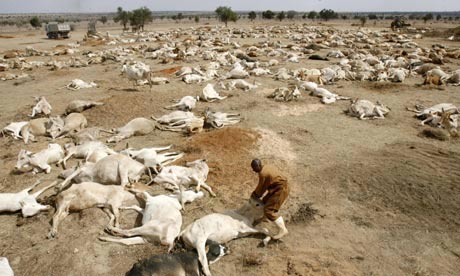 据英国《卫报》9月17日报道,肯尼亚的干旱已经到了非常严重的程度,当地居民面临着饥渴以及死亡,甚至就连成群的动物都不能幸免。日前,肯尼亚首都内罗毕附近数百头牛被葬在一个大墓坑中的照片曝光。肯尼亚旱灾令人惊心动魄,人畜无食物可吃,400万肯尼亚人需要西方国家的粮食援助。
