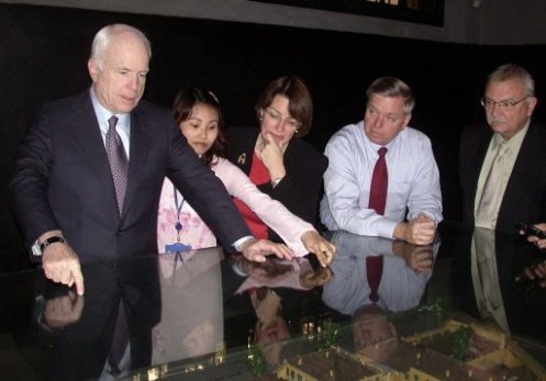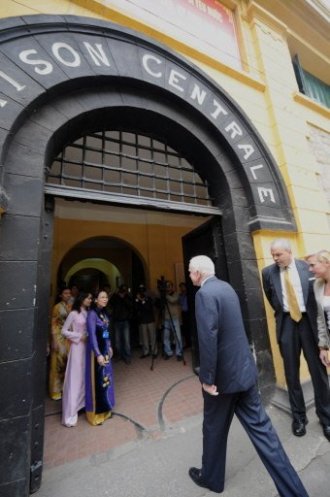 现年72岁的麦凯恩兴奋地同一起访问越南的美国参议员谈起了越南监狱生活。由于今非昔比,今天的麦凯恩已经是越南政府邀请的客人,因此在监狱门口,有众多越南美女在迎接。直到上世纪90年代,该监狱还在使用。