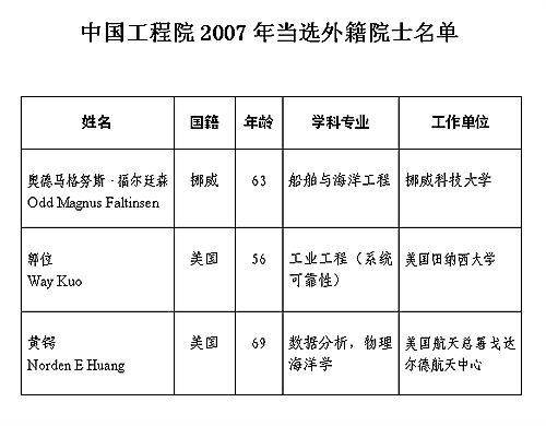 中新网北京12月29日电(记者 孙自法)中国工程院29日在北京宣布,该院2007年增选产生33名新院士。以下为新院士名单。