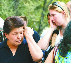 25日,遇难者家属到比什凯克认领亲人遗体。