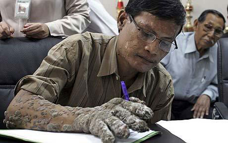 英国《每日电讯报》独家报道过有关“印尼男子手脚生出树枝树根”的新闻。37岁的印度尼西亚男子德德得了一种怪病,他的四肢仿佛树干一般,居然生出了错综盘踞的树枝和树根状的肉瘤。在接受长达9个月治疗、历经8次手术后,今年8月,德德成功摆脱了使他无法行动的肉瘤。