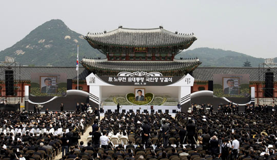 上午11时(北京时间10时),灵车行列抵达景福宫兴礼门前院时,军乐队演奏《永远的安眠》,卢武铉遗体告别仪式正式开始。