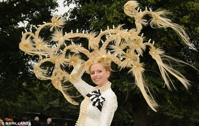 中新网6月19日电 据英国媒体报道,英国皇家赛马会18日进入第三天,也就是英国人所称的“淑女日”,依照传统,这一天女士们都会戴着造型奇特创意十足的帽子亮相,争奇斗艳吸引眼球。