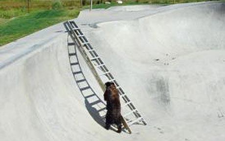 美国一黑熊被困滑板场地 自己爬梯子逃出(组图)(2)