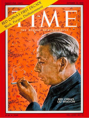 1959年,新中国成立10周年,《时代》第9次将目光对准中国,10月12日,当时的国家主席刘少奇成为封面人物。题为《呆板的人》的封面文章和满纸的忧虑证明,10年过去了,美国依然没有停止唱衰中国:被孤立的中国、大跃进的严重后果、中苏关系陷入僵持。在文章中,刘少奇塑造成“呆板”、“受制于人”的晦涩形象,这个形象成为《时代》眼中的全部,封面上,神色忧虑的刘少奇背后,是数不清的红色蚂蚁。