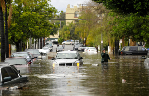 自十七日开始,美国加州南部地区普遍遭遇暴风雨袭击,部分地区发生山洪和泥石流。今天,暴风雨再次肆虐洛杉矶等地,美国国家气象局中午一度发布南加州沿海将发生龙卷风的警报。