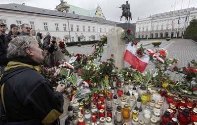 代行总统职权的波兰众议院议长科莫罗夫斯基10日宣布举行为期一周的“全国哀悼日”,悼念当天在飞机失事中遇难的波兰总统卡钦斯基及其随行人员。俄罗斯总统梅德韦杰夫10日也宣布4月12日为俄罗斯的全国哀悼日。