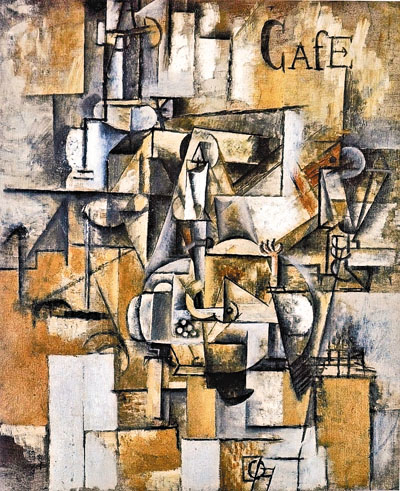 毕加索在立体主义时期的作品。立体主义把表象打散了重新组合,为的是捕捉更深层次的意象。在《鸽子与豌豆》里,在重叠的不规则方格子之间出现了弧形,画中间有5颗灰色粒似的物体。这大概是毕加索真实的生活描述。当时的毕加索已经颇有名气,生活环境好转。