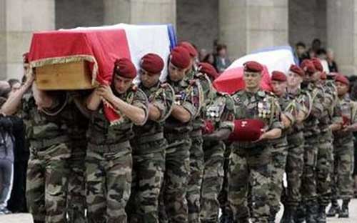 法国总统萨科齐、总理菲永和政府内阁部长以及部分议会议员出席了仪式。国葬仪式后,参加仪式的人员在荣军院的圣路易教堂举行了宗教追悼仪式,萨科齐在仪式上致悼词,赞扬了10名阵亡法国战士的功绩。