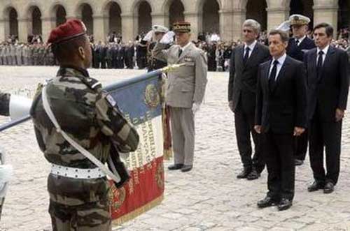 8月21日,法国为10名在阿富汗遭塔利班伏击阵亡的法国士兵举行国葬,法国总统萨科齐、总理菲永和政府内阁部长以及部分议会议员出席仪式