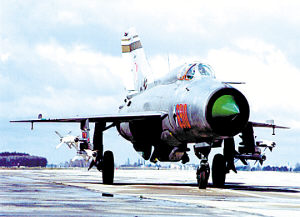 米格-21是根据朝鲜战争中喷气战斗机的空战经验研制而成,其飞行速度为2马赫——声速的2倍,轻巧灵活。