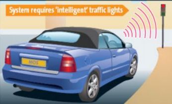 原理是先在交通灯内安装特殊发射器,向远至274米外发出讯号,汽车接收后,会就位置和方向路线进行计算,在屏幕上显示可顺利通过路口的最佳车速。