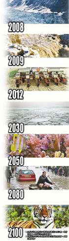 虽然确定这些潜在的巨变的日期并不容易,但是以下时间表有助于我们从宏观角度看地球的未来。这个时间表,是根据近期多项研究和政府间气候变化委员会报告所制订。