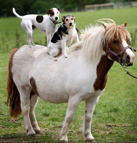 这只名叫弗雷迪的老狗已经有5年的“骑龄”了。据它的主人描述,一日弗雷迪正驾着爱马兜风,它的年轻伙伴——一只名叫帕西的狗忽然跳到马背上跟着弗雷迪一起享受骑马的乐趣。自那以后,在弗雷迪的“指导”下,帕西很快学会了如何驾驭马匹。