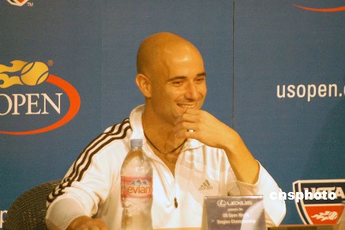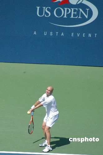 当地时间九月三日,三十六岁的阿加西在美国网球公开赛上不敌德国新秀贝克尔。这意味着赛前曾宣布要在美网赛后退役的阿加西就此告别职业网球赛场。中新社发 刘小青 摄