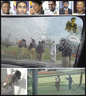 事发当时,斯里兰卡板球队队员正在前往位于巴基斯坦东部城市拉合尔的一座体育馆的路上,突然车队遭到一伙持枪分子的袭击。从电视画面上可以看到,背着双肩包的持枪歹徒向车队开火,有几辆汽车被毁,地面上还有一枚没有爆炸的手榴弹。