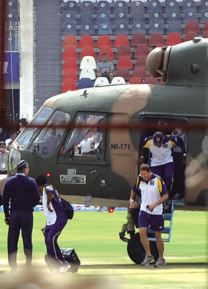直升机迅速转移板球队员