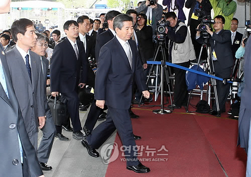 中新网4月30日电 据韩联社报道,韩国前总统卢武铉30日下午以嫌疑人身份现身首尔瑞草洞的大检察厅,接受中央调查部的调查。
