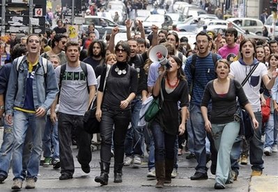 中新网10月27日电 据香港《文汇报》援引外电报道,在意大利反对派领袖、前罗马市长韦尔特罗尼带领下,声称约250万示威者25日在罗马示威,抗议总理贝卢斯科尼领导的右翼政府削弱教育开支,又运用权力包庇他的私人企业。韦尔特罗尼又指摘贝氏面对目前的社会和经济危机显得无能。