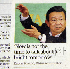 英《卫报》刊登的日经财相与谢野馨的照片说明误将其当作中国部长。
